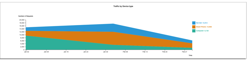 The Devices dashboard provides information regarding the devices and servers utilized to access your APIs. It allows you to observe trends in user behavior when accessing your APIs. By utilizing this dashboard, you can identify changes in traffic patterns, such as an increase in traffic from one device type and a decrease from another. This enables you to make informed decisions on whether any actions need to be taken in response to these changes.