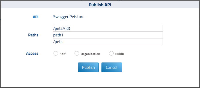 You can specify the scope of “publish” API. It can be published to owners further usage and testing, to a team, to user's organization or to “public” or anyone who registers on the platform for user's organization.